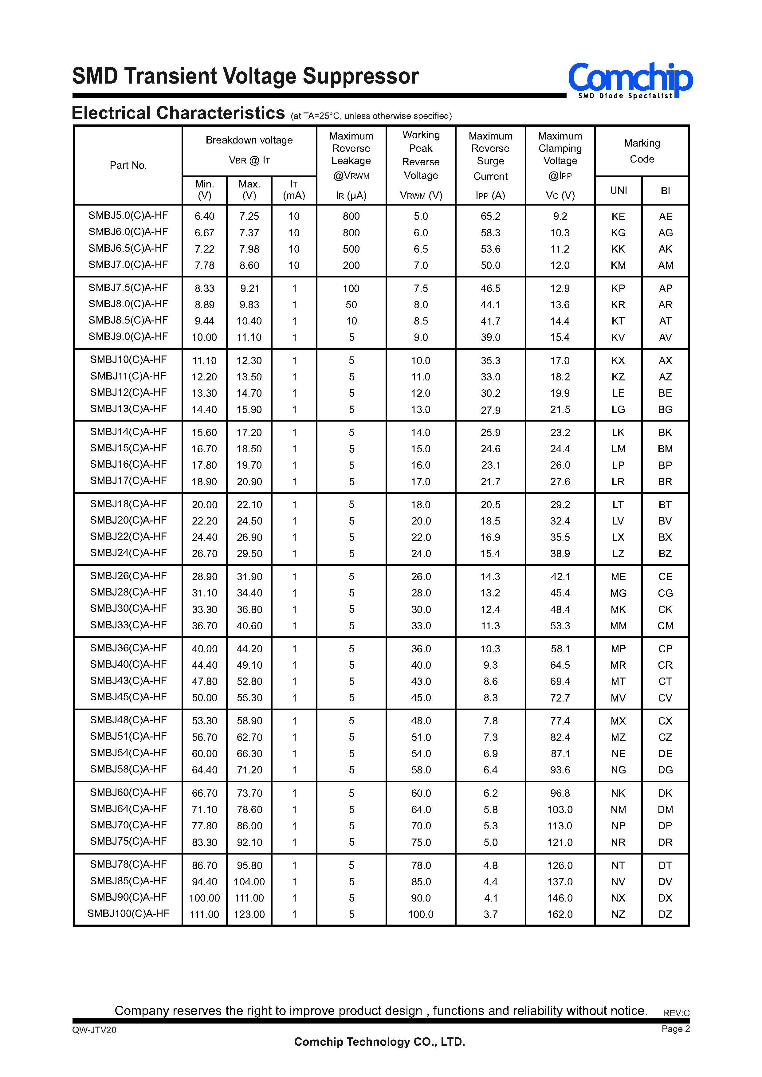 | 系列 | SMBJ5.0(C)A-HF Thru. SMBJ250(C)A-HF |