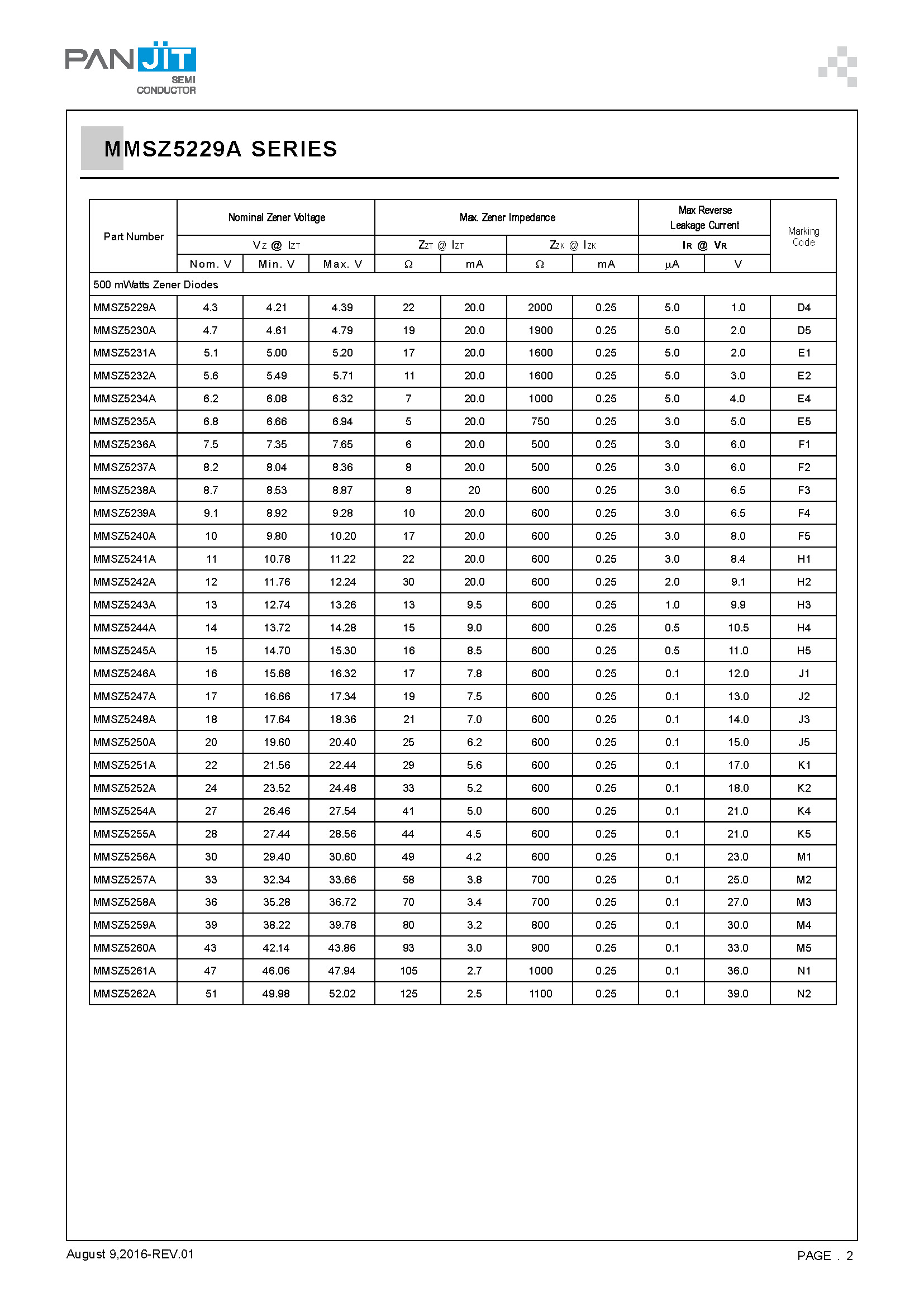 | 系列 | MMSZ5229A SERIES |