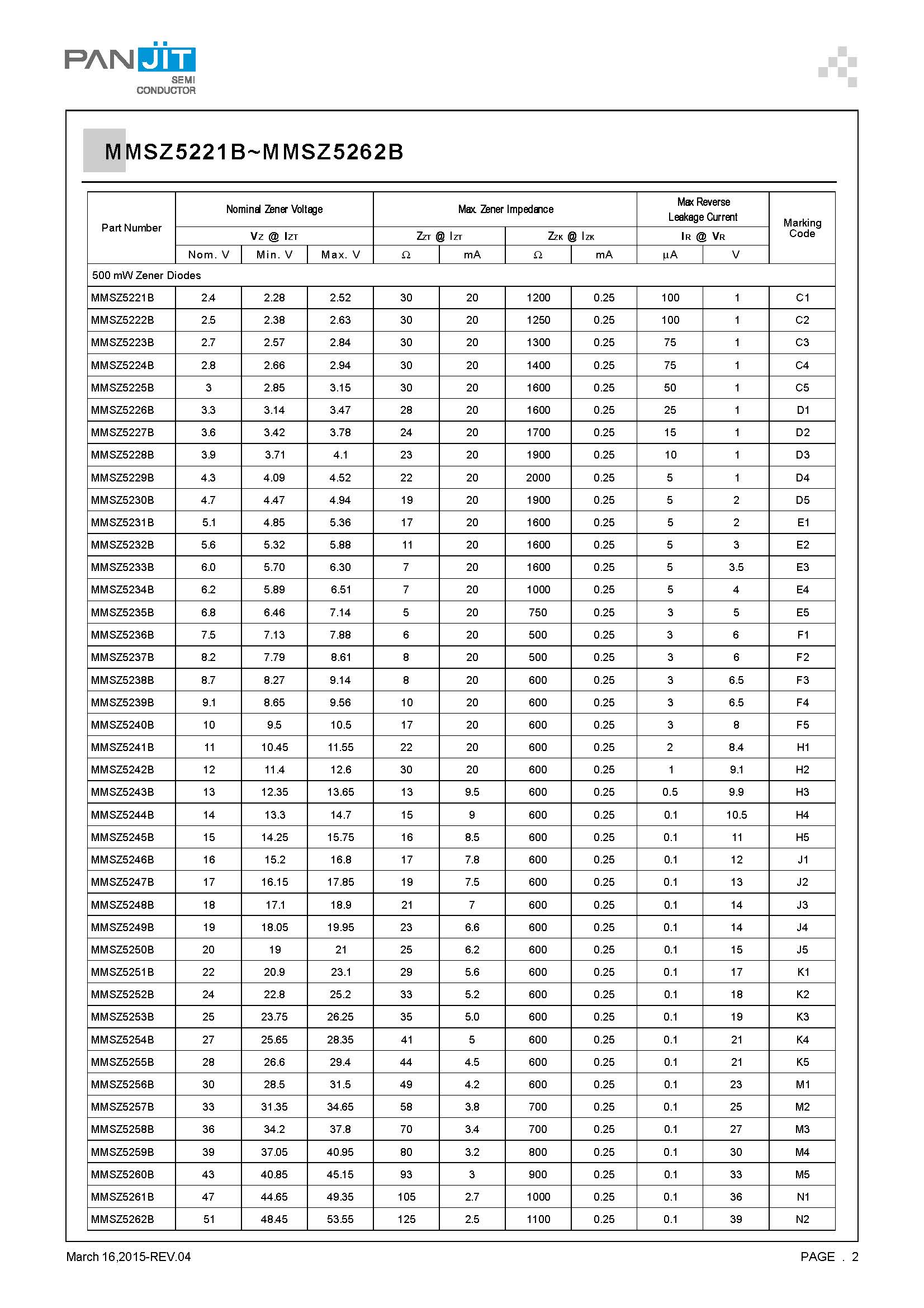 | 二極體 | SMD 齊納二極體 SMD Zener Diodes |