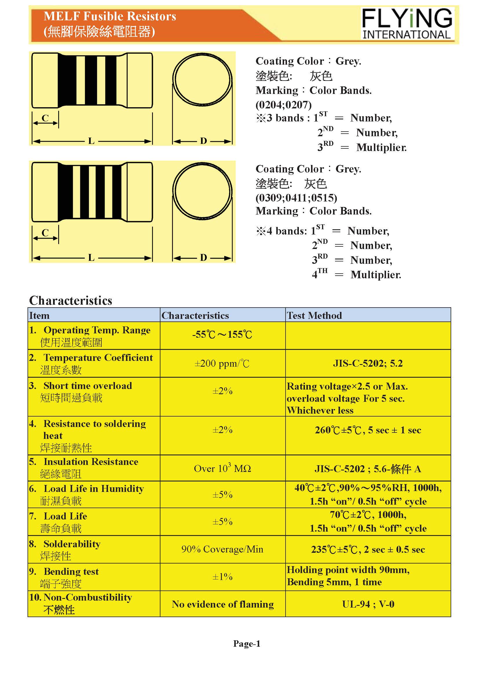 | 商品名稱 | MELF Fusible Resistors |
