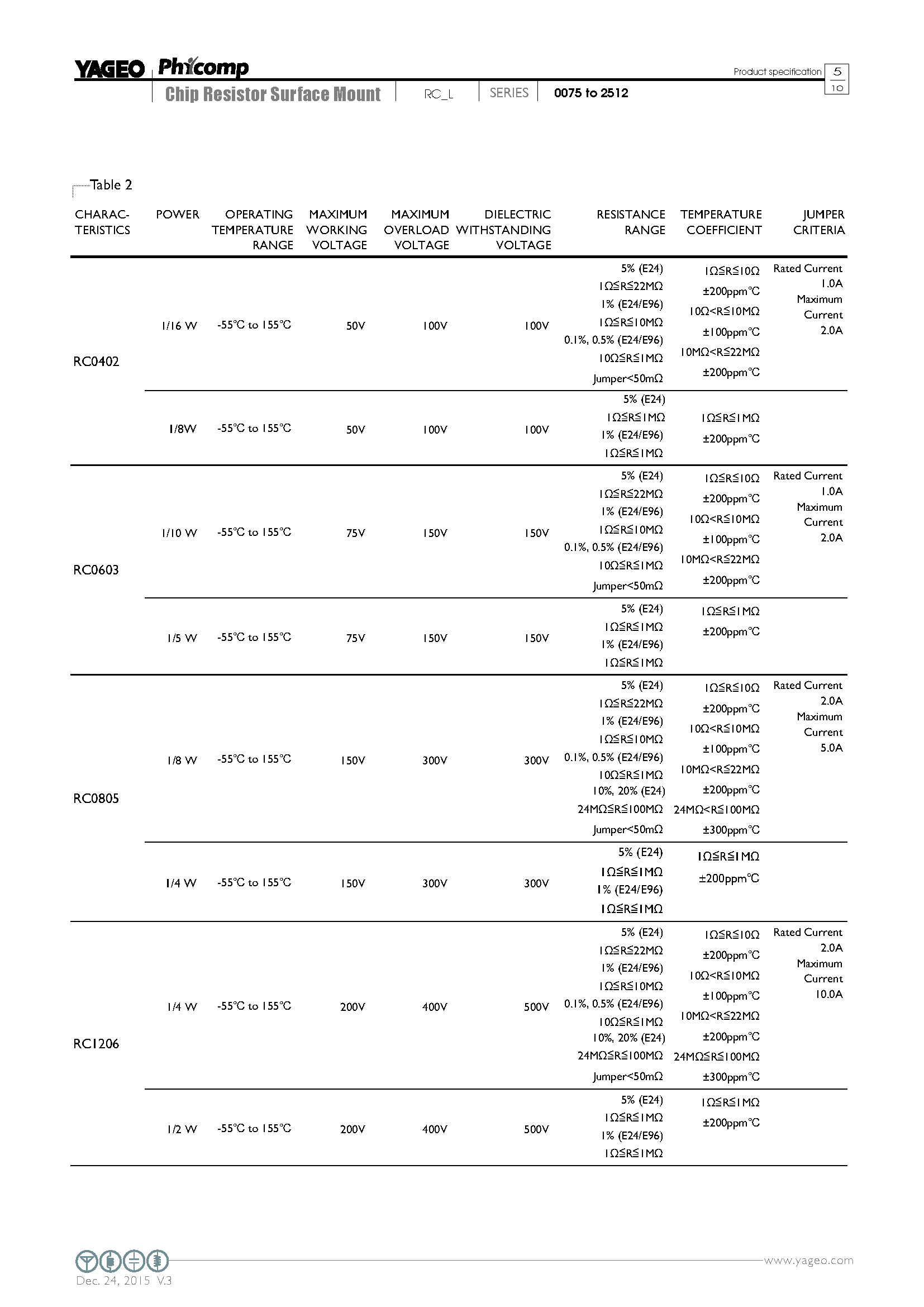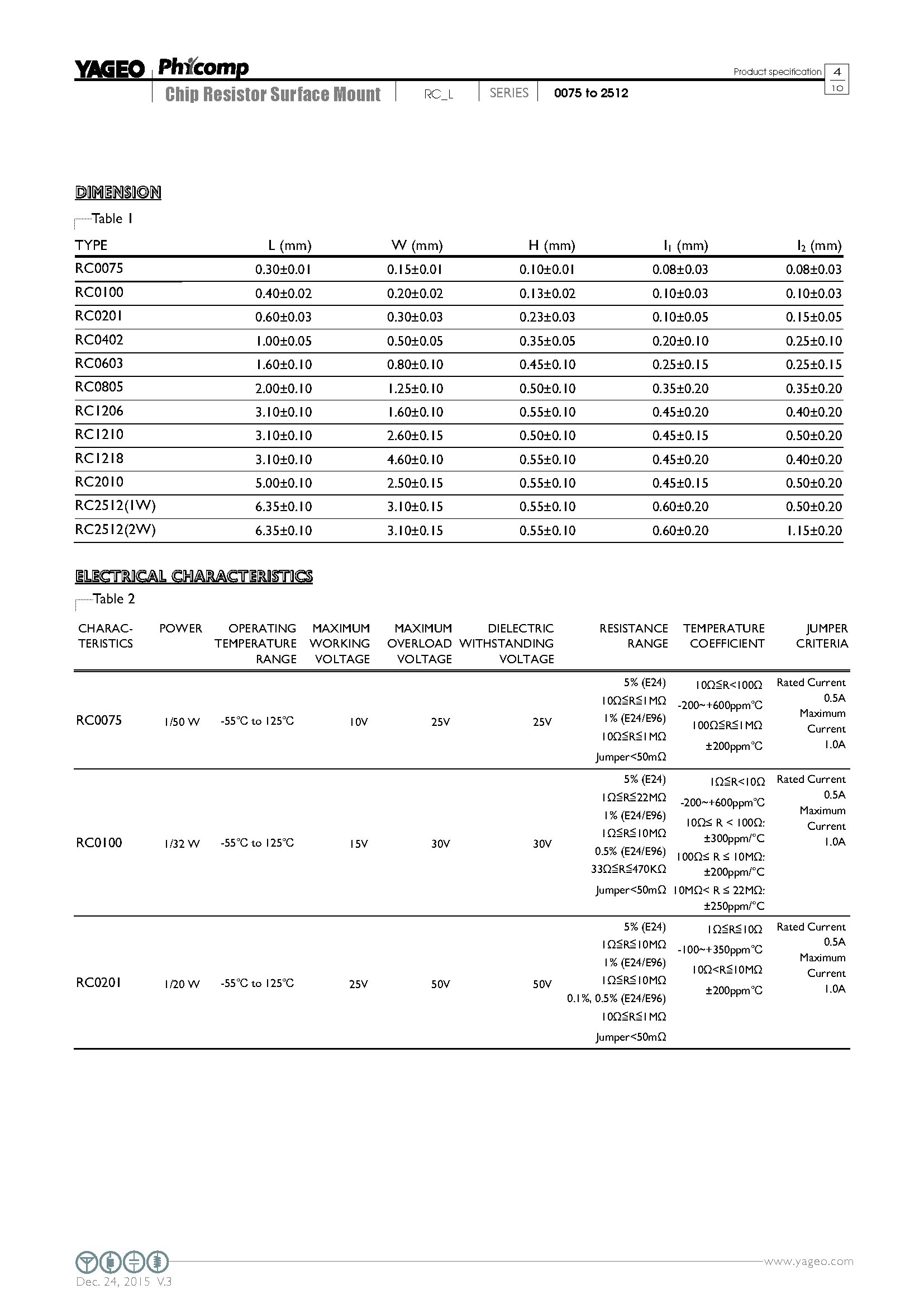 | 電阻 | SMD 厚膜晶片電阻 Thick Film Chip Resistors |