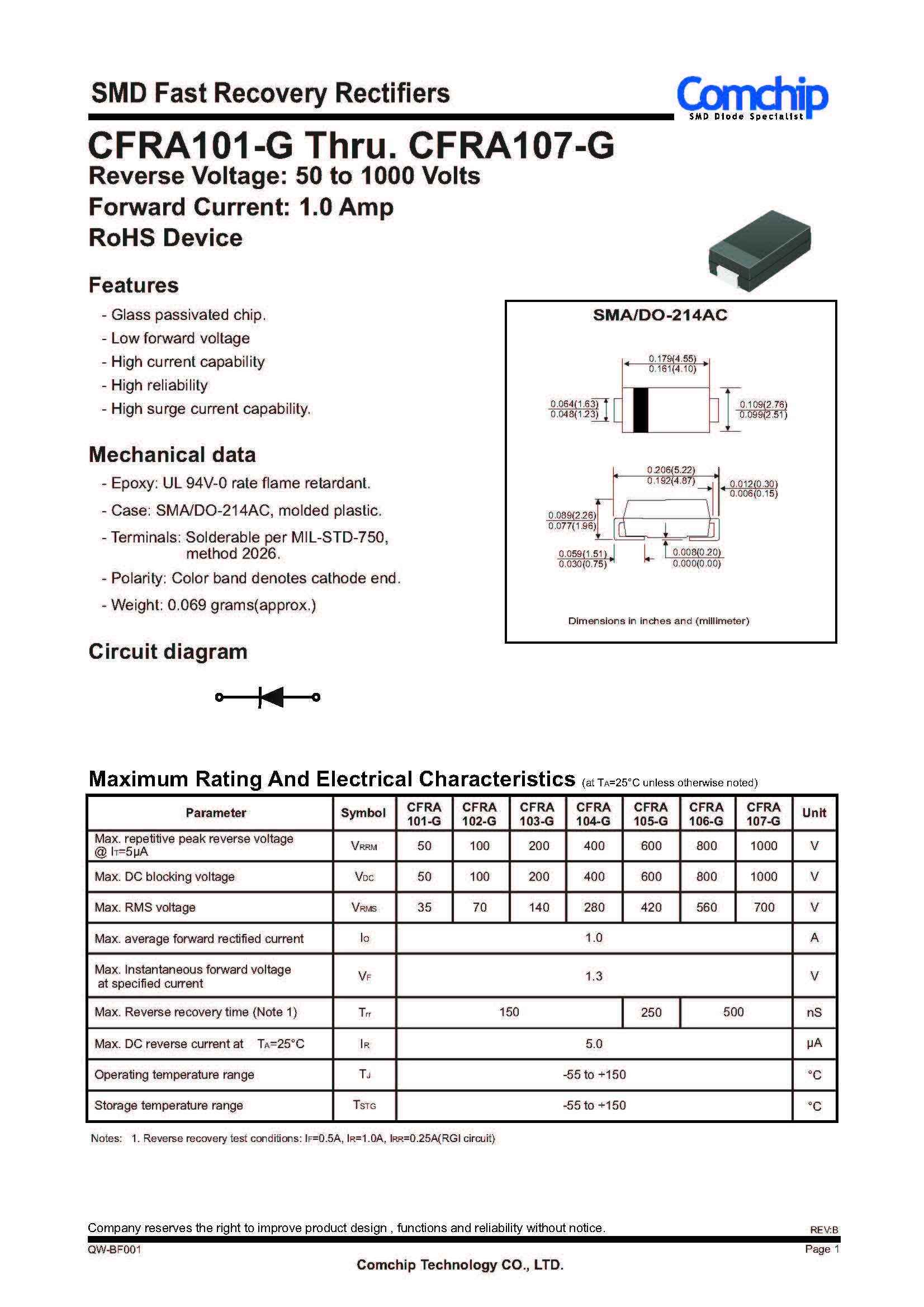 | 系列 | CFRA101-G Thru. CFRA107-G |