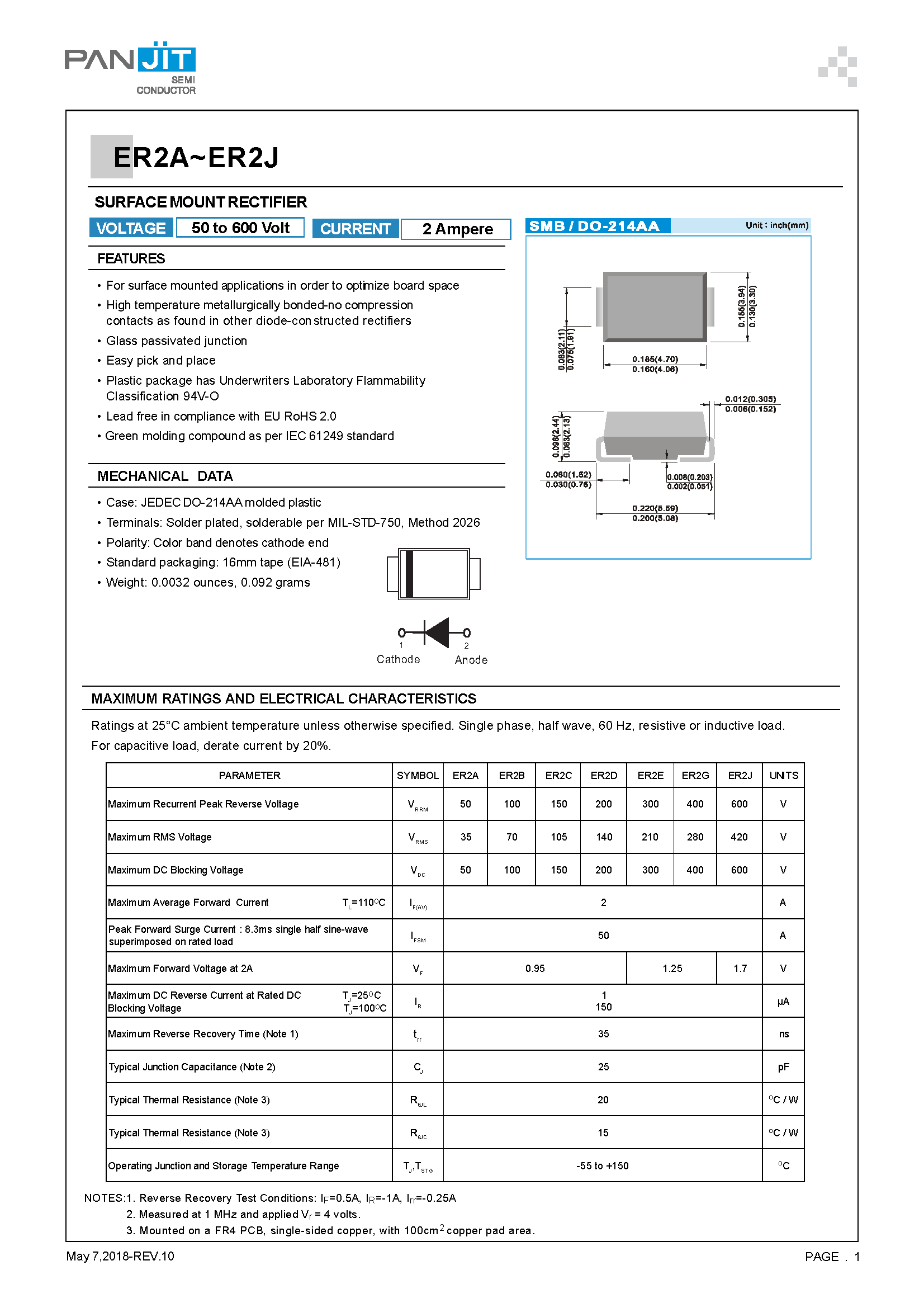 | 說明 | 整流二極體 ER2D 2A 200V SMB/DO-214AA |