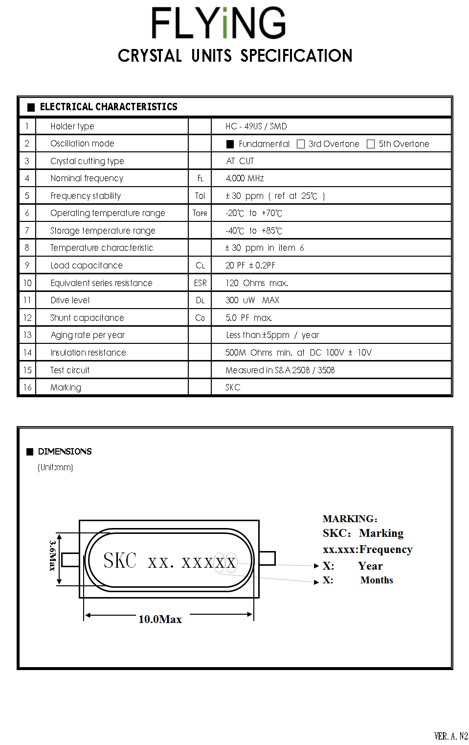 說明 | 49US 4.000MHZ ± 30ppm 20PF |